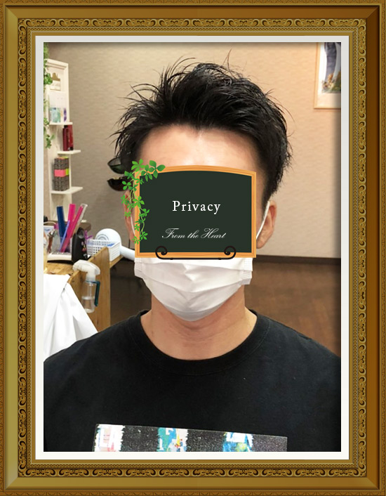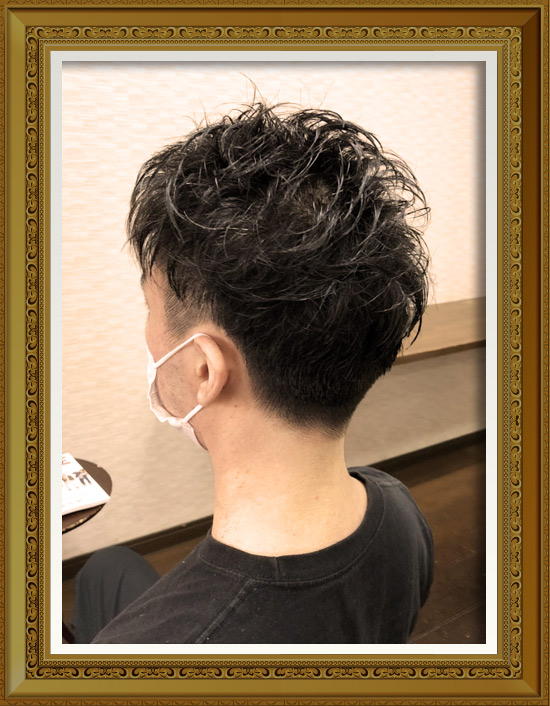 直毛で毛量も多く、カットしても髪が立つ事でいつも爆発してしまい、髪がまとまらなくてお悩みの美容室難民だったお客様。 今回は当初パーマも視野に入れてのご来店でしたが、やはり細めなメンテナンスでのご来店が難しいという事で、お客様とご相談の上、サイドはツーブロックに、バックは刈り上げてスッキリとした仕上がりに。 また、伸びた際の型崩れが気にならないよう、カットのみで軽さプラスパーマのような質感を演出したスタイルを作りました。